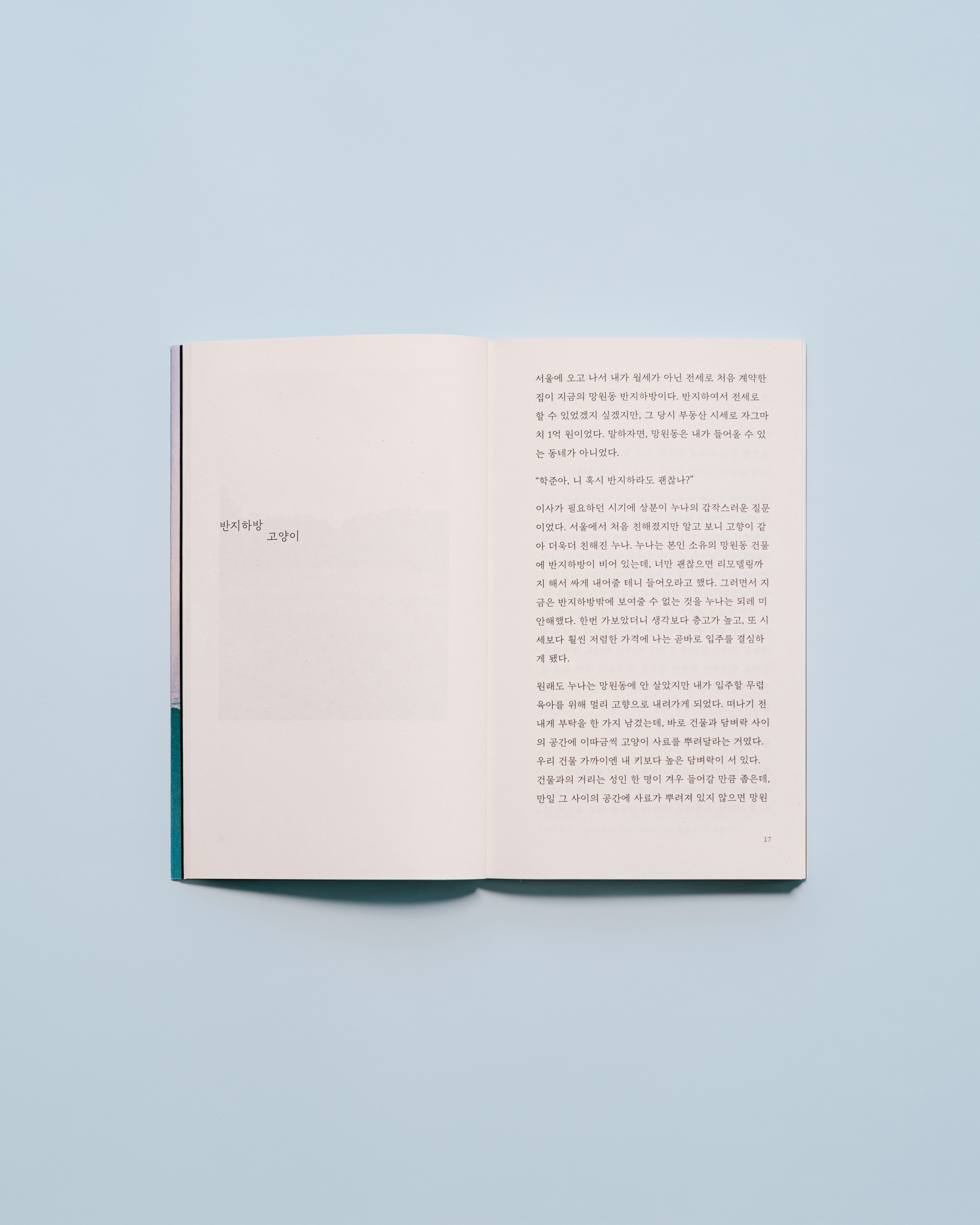 표지는 업인듯, 취미인듯 낚시를 하는 섬사람의 필름 사진을 효과 없이 그대로 넣었습니다. ‘나’와 작가의 이름을 이은 단 하나의 선도 직접적이지만 그것이 ‘나’임이 분명하기에 사용했습니다.