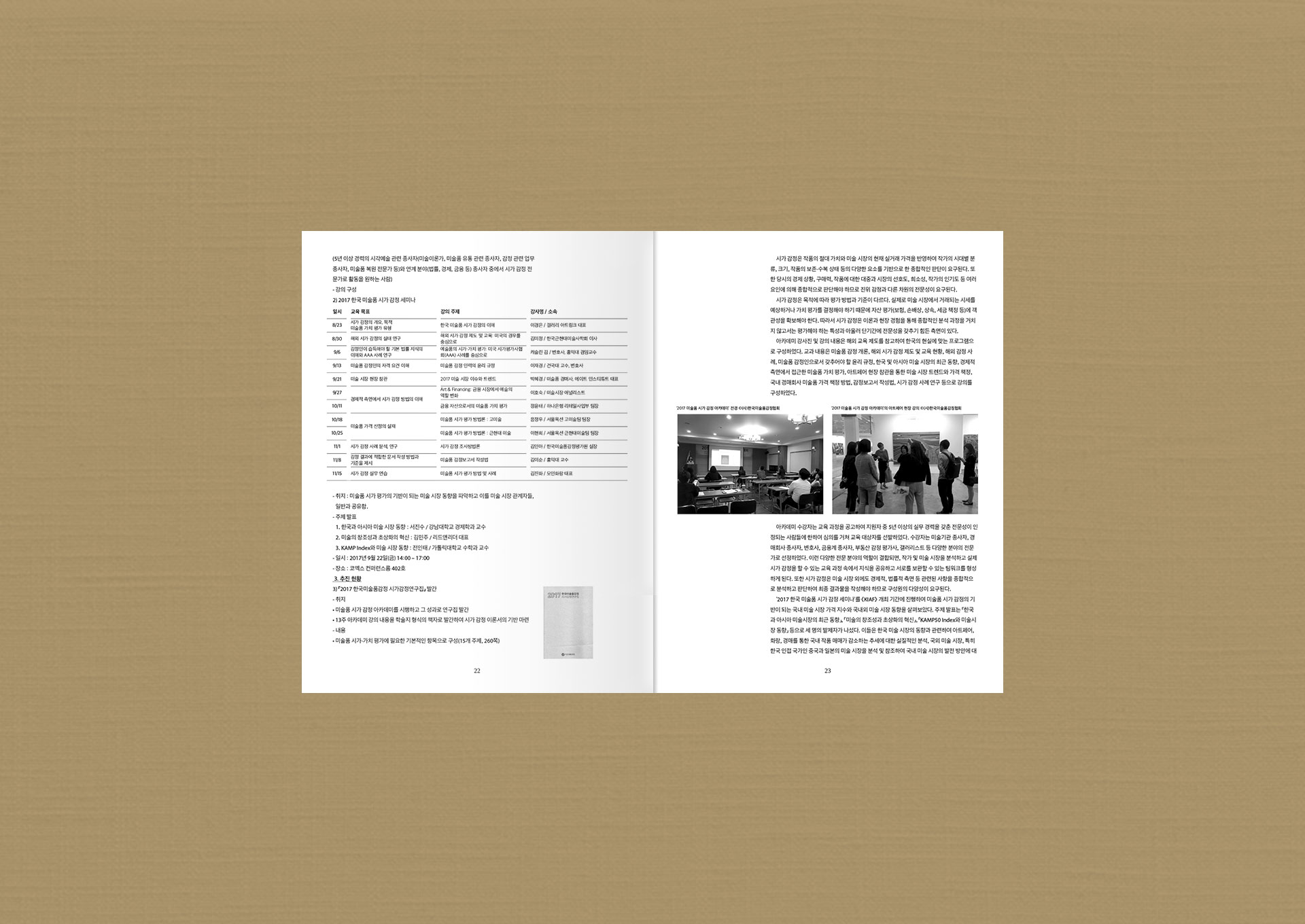 예술경영지원센터에서 진행한 2018년 미술품 감정인력 양성사업 워크숍 작업입니다. 양성사업에 선정된 참여자 11명을 뜻하는 11개의 선은 감정사의 시선으로 작품을 바라보는 넓은 시야를 표현합니다. 감정사가 바라보는 작품은 사각형 안에 담기며, 이 모티프로 포스터, 웹배너, 보고서를 디자인하였습니다.