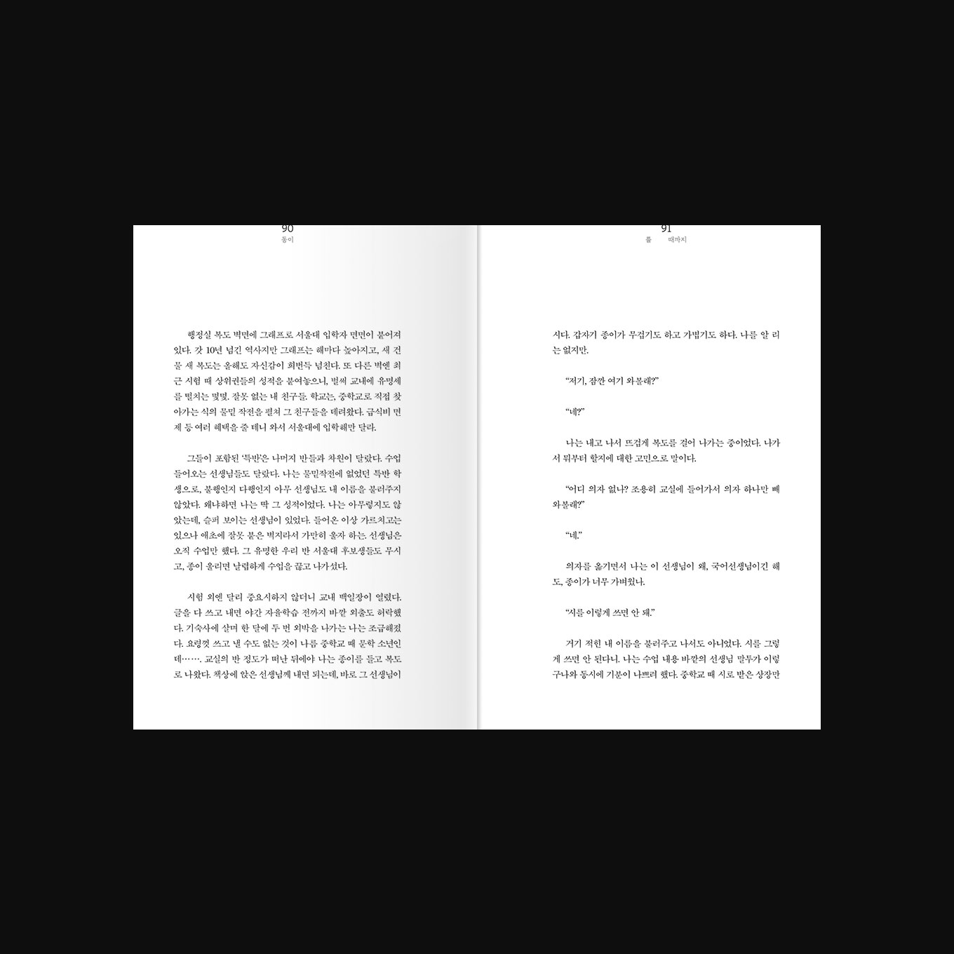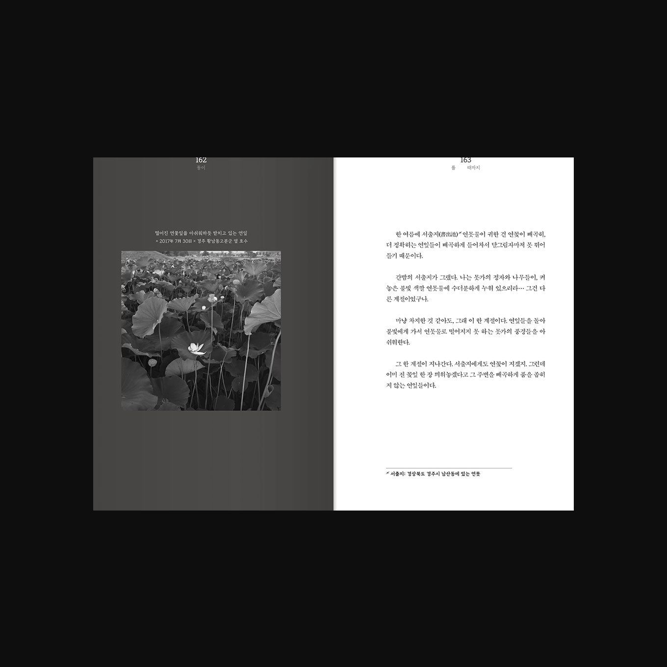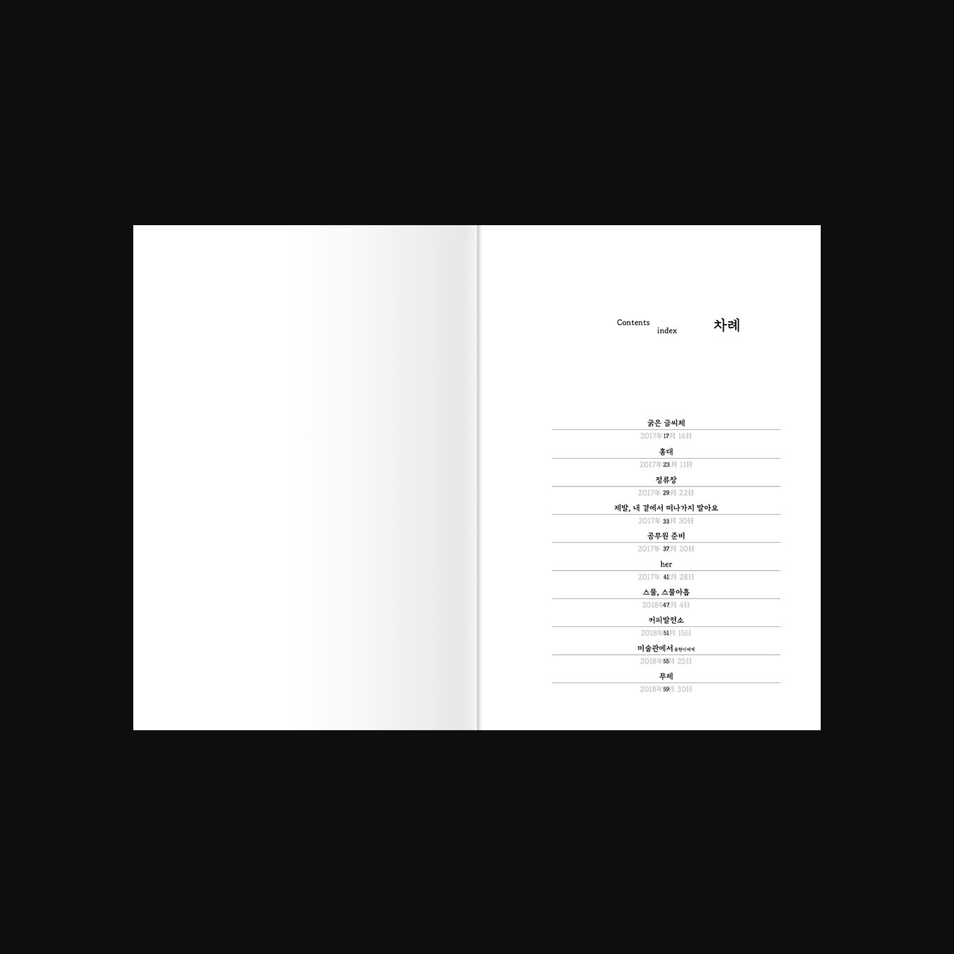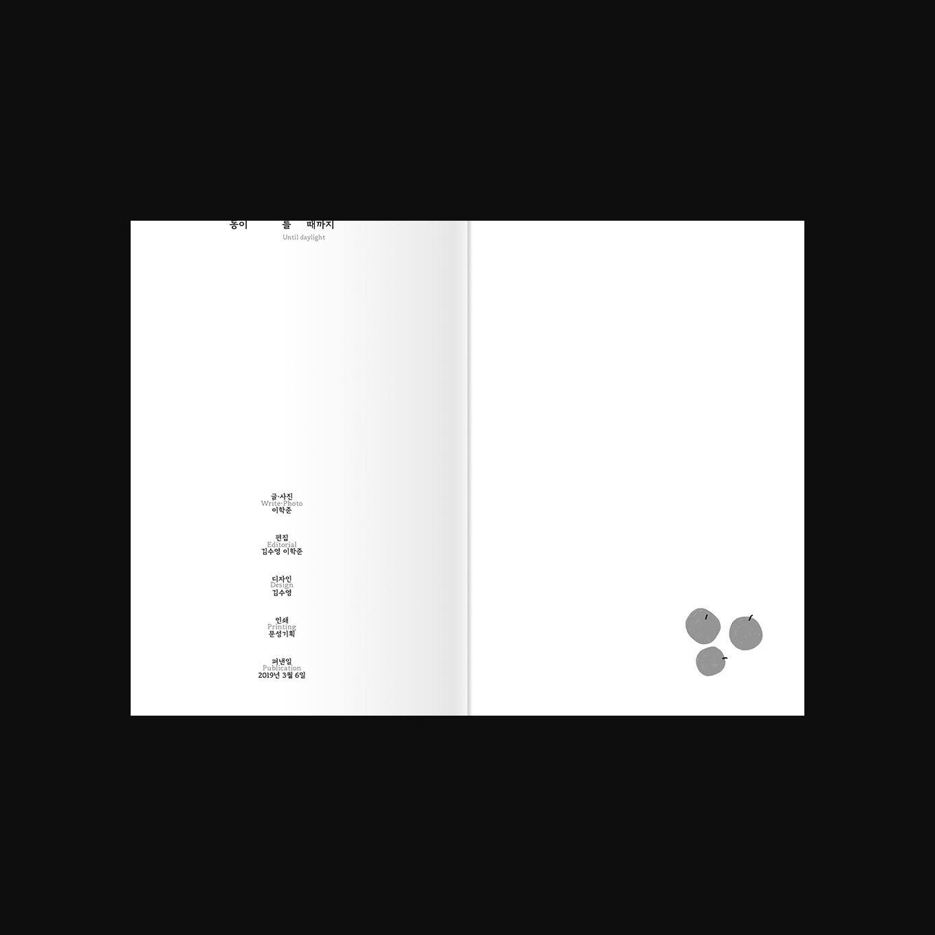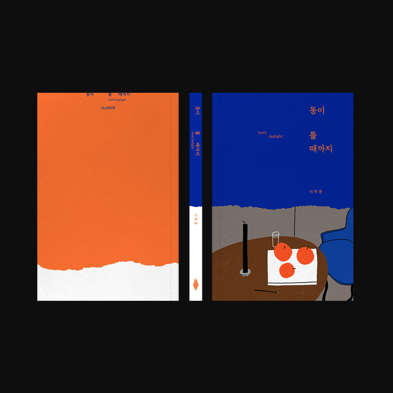 표지는 점점 동이 트는 수평선 처럼 계속 글을 쓰고 고쳐나가며 뜯기는 종이에 빗대었고 내지 본문을 아래쪽에 가깝게 배치하여 무게감을 아래쪽으로 향하게 하였습니다.